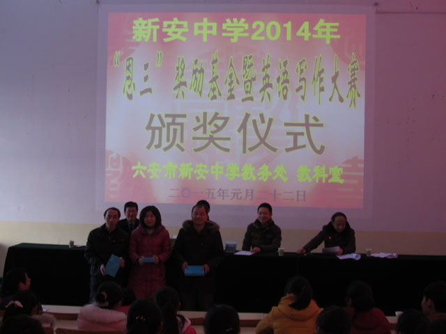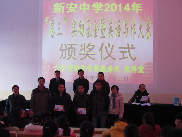 六安市新安中学举行“恩三”奖励基金暨英语写作大赛颁奖仪式
