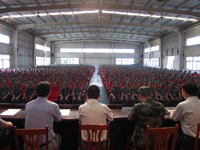 上图:左起依次为李传海副校长、军训领队教官、朱思平校长、戴德兵副校长、鲍俊副校长