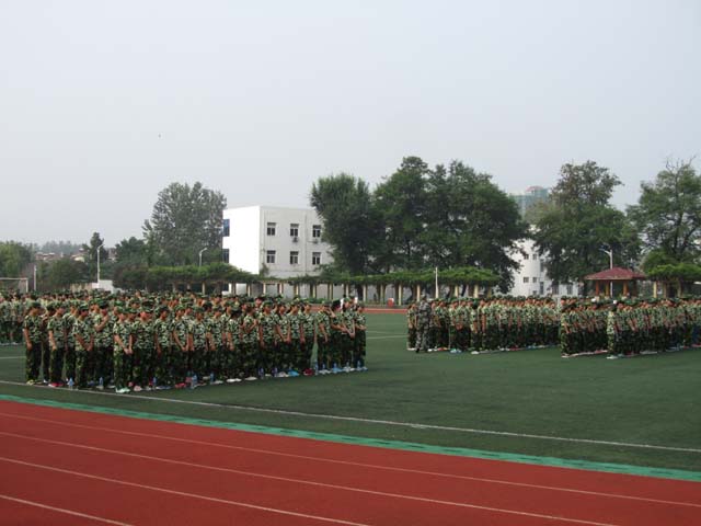 开学典礼暨军训开训仪式结束后,军训以班级为单位在学校田径运动场全面展开。根据计划安排,此次新生军训将于8月26日结束。