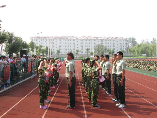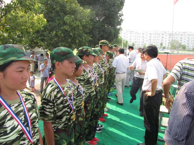 上午8:30,军训汇报表演暨总结大会准时举行,在进行升国旗奏国歌仪式后,随着雄壮的检阅进行曲播放,由军训领队教官陪同,朱校长对各个方阵进行了检阅,检阅结束各方阵进行汇报表演,表演的科目有:分别以军训单位进行分列式方阵表演,男子军体拳、搏击操与擒敌拳方阵综合表演,女子队列表演与女子韵律操方阵表演等。同学们整齐的步伐、动作,精彩的表演博得了学校领导、场内外师生、教官和群众的喝彩与热烈的掌声。