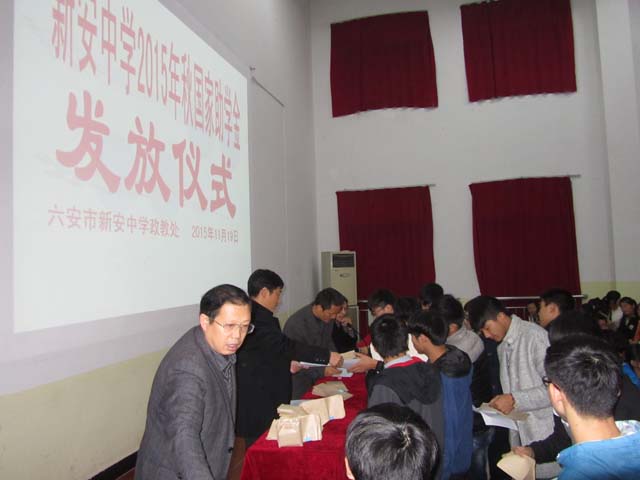 六安市新安中学举行2015年秋季“国家助学金”发放仪式