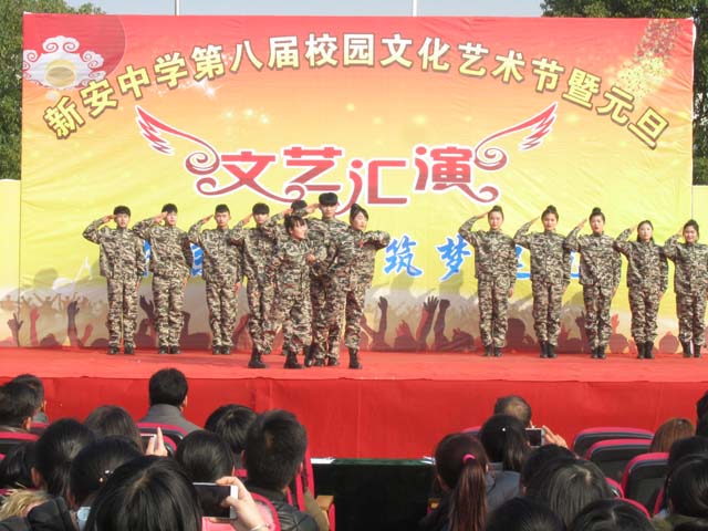 为了活跃校园精神文化生活,营造迎新气氛,弘扬校园文化艺术,创建和谐校园,由六安市新安中学团委会主办的主题为“情系新中 筑梦起航”校园文化艺术节暨2017年元旦文艺汇演于2016年12月30日下午在田径运动场隆重举行。新安中学全体师生员工、部分学生家长及校外群众5000多人观看文艺汇演。