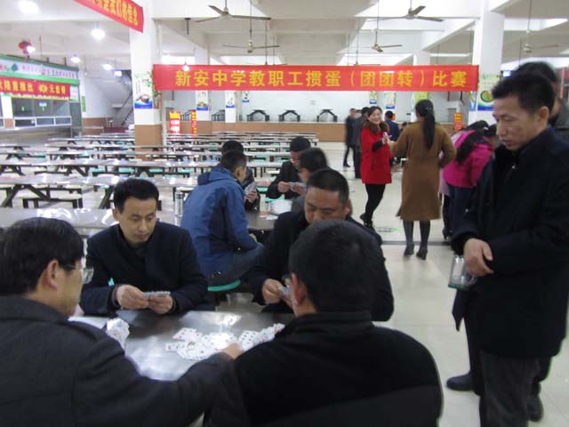 为了缓解教职工的工作压力,丰富教职工课余生活,2017年3月7日晚,六安市新安中学工会在学生餐厅一楼主办了教职工掼蛋比赛,广大教职工积极响应,共有70多名教职工参加。