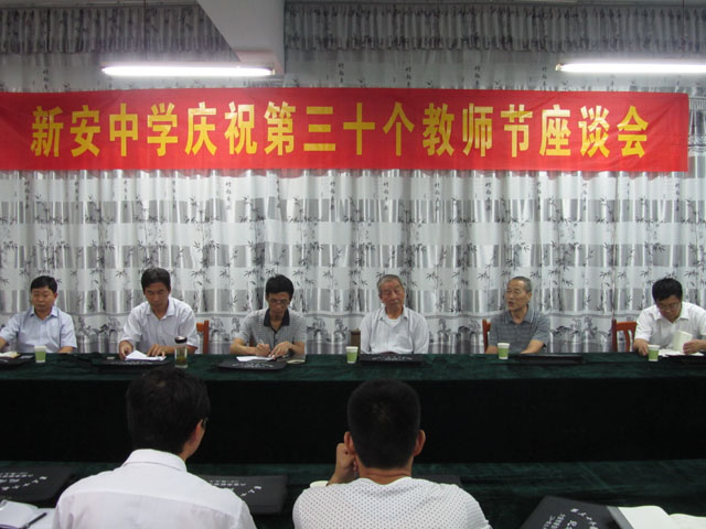 六安市新安中学召开第30个教师节新老教师代表座谈会来源:新安中学办公室上图:左起依次为许大俊、戴德兵、陈良玉、荣维运、李瑞良、鲍俊 2014年9月10日下午,六安市新安中学在科学馆二楼多功能室召开庆祝全国第30个教师节座谈会,老教师代表、2014年进入新安中学的新教师、市级学科带头人、2014年裕安区师德先进个人、学校优秀教师代...