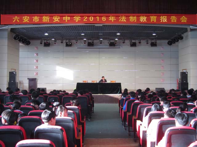 六安市新安中学举行2016年法制教育报告会 为了贯彻国家司法部、中央综治办、中国关工委三部委“关爱明天,普法先行”有关文件精神,加强对青少年普法教育,更好地增强广大师生的法制观念,进一步促进师生遵纪守法的主动性和自觉性。2016年12月2日下午,在国家宪法日暨全国法制宣传日(12.4)到来之际,六安市新安中学特邀裕安区新安法...