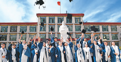 6月6日,西藏藏医学院毕业生合影。 新华社记者 觉 果摄