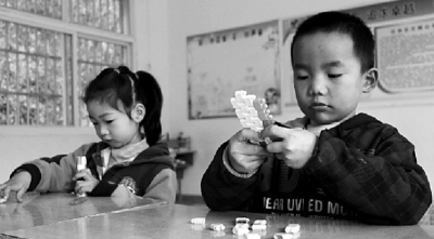 安徽六安乡村教学点的孩子们正在搭积木。光明图片/视觉中国......