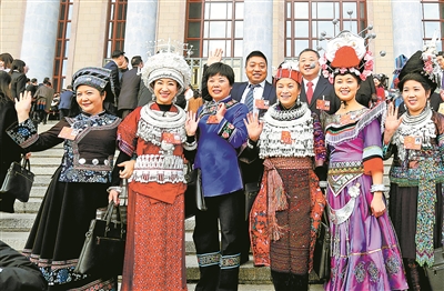 3月5日,十三届全国人大代表步入会场前合影留念。本报记者 张学军 摄 关键词 城乡一体化 【报告原声】 推动城乡义务教育一体化发展。 【代表委员声音】 全国人大代表、江西省教育厅厅长叶仁荪:江西是革命老区、经济欠发达地区,教育发展的不平衡不充分尤为突出,这里面有区域间的不平衡,也有结构上的不平衡。面向新时代,江西教育面临普及和高质量发展的双重压力,必须在公共政策上下足功夫。去年江西82.1%的县通过了国家义务教育均衡发展督导评估,这个比例高于全国平均比例。下一步我们考虑,对义务教育要抬高底部促均衡,啃下尚未通过验收的“硬骨头”。(本报记者 柴葳 刘博智 采访整理) 【会外连线】 北京市教委主任刘宇辉:实现城乡教育优质均衡发展需要硬件软件两手抓。近年来,北京通过校园标准化建设、城乡一体化学校建设、城乡教师有序流动等方式促进城乡学校办学条件均等化。2018年,北京市将全面启动中小学教师职称改革,进一步推动义务教育校长教师合理有序流动,努力使乡村教师待遇稳步提高、岗位吸引力大幅增强。 (本报记者 施剑松 采访整理) 关键词 辍学率、“大班额” 【报告原声】 切实降低农村学生辍学率,抓紧消除城镇“大班额”。 【代表委员声音】 全国政协委员、天津市教委主任王璟:首先是压实政府的责任,政府有责任把学校建设好,让孩子能够接受义务教育;其次,要压实学校的责任,学校有责任为孩子提供优质的条件,让孩子学有所乐;再其次,要压实家长的责任,按照义务教育法的要求,家长有义务保障孩子完整接受义务教育。(本报记者 李澈 采访整理) 【会外连线】 山西省教育厅副厅长任月忠:我们制定了《山西省消除“大班额”专项规划》,并把消除“大班额”计划列入全省教育“八大项目工程”,与城乡教育一体化改革统筹推进。我们要求各地建立消除“大班额”的工作台账,对“大班额”学校实行销号管理,保证零增量,消除现存量。截至2017年底,山西省共有76个县(市、区)消除了“超大班额”。2018年,山西省将有27个县(市、区)完成消除“大班额”计划,28个县(市、区)完成消除“超大班额”计划。(本报记者 赵岩 采访整理) 关键词 课外负担 【报告原声】 着力解决中小学生课外负担重问题。 【代表委员声音】 全国政协委员、民进上海市委专职副主委胡卫:解决中小学生课外负担重问题,需要全社会的共同努力。对学生课业负担起着推波助澜作用的校外培训机构,政府要加大整顿和规范力度。要进一步推动课程改革、考试制度改革,从源头上解决学生课业负担重问题。家长也应该理性对待孩子成长成才的问题,尊重孩子的个性特长,与学校教育携手,共同促进孩子身心健康成长。(本报记者 焦以璇 采访整理) 【会外连线】 天津市河西区教育局局长郝奎刚:各类教育要形成合力,打好“组合拳”。坚持用丰富多彩的校内课程涵养学生的美好品德,引导学校在培养学生的必备品格和关键能力上下功夫;坚持用学生喜欢的方式和有吸引力的内容安排好课后服务,采取多种模式有效解决“三点半难题”;坚持全面评价学生,积极引导家长参与学校管理、学习科学的教育方法。(本报记者 徐德明 采访整理) 关键词 学前教育 【报告原声】 要多渠道增加学前教育资源供给,运用互联网等信息化手段,加强对儿童托育全过程监管。 【代表委员声音】 全国政协委员、天津大学教授刘昌俊:随着城市化进程加快,学前教育市场供给与需求的矛盾日益突出。入托难、学前教育场所器材匮乏、高素质学前教育人才严重不足等,已成为困扰教育部门和家庭的大难题。我特别期待政府加大对学前教育师资队伍建设的支持力度,加强对幼师职业院校发展的支持力度。(本报记者 董鲁皖龙 赵彩侠 采访整理) 【会外连线】 重庆市江北区教委主任马培高:江北区严格民办幼儿园安全监管,建立了各部门分工合作、街镇和社会监督员参与的多级安全监管体系,将全区148所幼儿园全部纳入管理,严格行政许可事项的审查,定期开展幼儿园督导评估、年检、等级评审,逐步形成了“四公示”的质检结果认定机制。江北区的幼儿园在“天眼”监控下,基本消除教育教学隐患,让幼儿在园所内快乐成长。(本报记者 胡航宇 采访整理) 关键词 职业教育 【报告原声】 支持社会力量举办职业教育。 【代表委员声音】 全国政协委员、民进上海市委专职副主委胡卫:职业教育是“一带一路”建设的重要支撑力量。我们要把握“一带一路”沿线国家的政治、经济、文化等方面的特征,开展不同形式的国际化办学模式。借助社会力量,与先期“走出去”的企业协作,开展职业技术培训。还可以整合职业教育及行业企业优质资源,联合企业共建实训基地,培养复合型技能人才,服务当地中资企业。(本报记者 郑亚博 采访整理) 【会外连线】 浙江省长兴县教育局党委委员赵运武:目前,长兴县大力支持社会力量举办职业教育,一方面通过政府购买服务等形式,实行在校学生经费补助政策,另一方面通过选派骨干教师和管理人员支教等方式,加强保障社会办学的师资力量。此外,长兴县还加速产学研一体化发展,助推企业持续发展和经济转型升级,进一步完善“政府统筹、企业主导、职校融入”的现代校企合作模式。(本报记者 蒋亦丰 采访整理) 关键词 高中教育 【